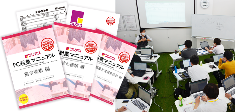 実技研修に打ち込めるトレーニングセンターがフレアスにはあります。一定のレベルでサービスを提供できる環境を整えております。