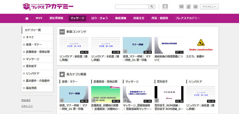 いつでもどこでも、好きな時に動画を用いて勉強できる独自のシステムで、レベルの高い知識と施術者を育成。